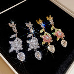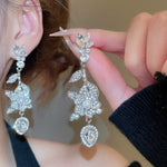 Exquisite Fresh Sweet Silver Needle Drop Earrings Sparkling Diamond Embedded Flower Design Luxury Feelings Women's Jewelry