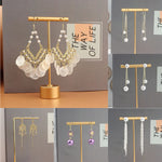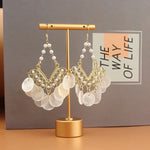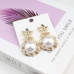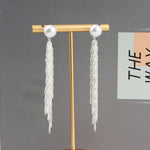Fashionable Exaggerated Luxury Pearl Versatile Drop Earrings French Vintage Shell Fringe Geometric Diamond Stud Earrings