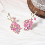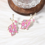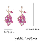 Fashionable Leaf Design Women's Earrings Elegant Zinc Alloy Diamond Embedded Drop Oil Vintage Style Sweet Style Ear Jewelry