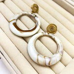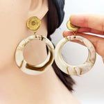 Fashionable Marble Texture Acrylic Earrings Set For Women Chic Geometric Pattern Stainless Steel Post Round Shaped Dangle