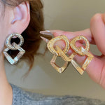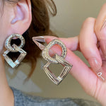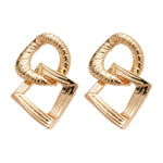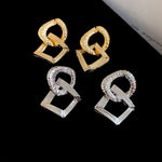 Fashionable Silver Needle Texture Folded Square And Round Pendant Earrings Geometric Pattern Alloy Simplicity Women's Jewelry