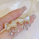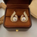 French Elegant Pearl Diamond Embedded Earrings Women's Luxury Atmosphere Fashion Super Shiny Zircon Ear Jewelry