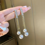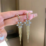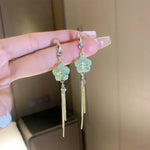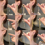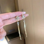 French Long Tassel Earrings Women Luxury Sensation Elegant Design New Trend Hoop Earrings Geometric Pattern Metal Material