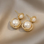 French Vintage Pearl Dangle Earrings Women Elegant Personality Autumn Winter Trendy Design Titanium Alloy Cute Style Jewelry
