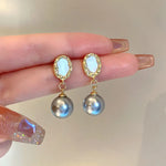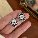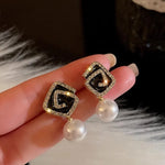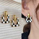 New Geometric Diamond Leather Earrings Women's Versatile Elegant Style Resin Ear Studs New Fashion Trending Jewelry Accessory
