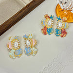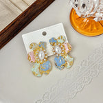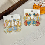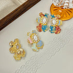 New Luxury Baroque Colorful Flower Small Niche Pearl Earrings Retro Court Style Women's Bohemian Print Alloy Jewelry Earrings