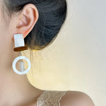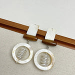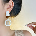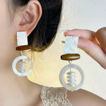 Retro Hong Kong Style Beaded Tassel Earrings Women's Personality Shell Charm Studs Unique Design Geometric Pattern 925 Silver
