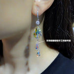 Silver Plated Crystal Long Dangle Earrings Women's Fashion Waterdrop Tassel Ear Jewelry Elegant Trendy New Model