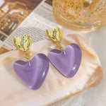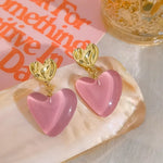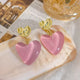 Unique Design Pink Resin Heart Shaped Earrings Fashionable Oversized Personality Peach Heart Studs Handmade Craft Women's Jewelry