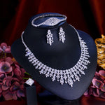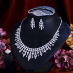 Elegant 4-Piece Zircon Jewelry Set for Women Sparkling Copper Necklace Earrings Bracelet Ring Suite for Wedding Banquet Evening Dress
