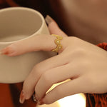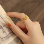 Elegant French Vintage Ring Exquisite Zircon Sunflower Design Sensation Small Audience Ring Band Copper Alloy Vacuum Plating
