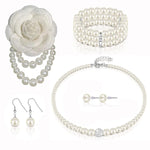 New Style Pearl Imitation Tea Rose Brooch Pin Wedding Dress High End Pin Pearl Jewelry Necklace Set For Women