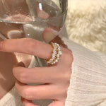 Starry Sky Splendor Pearl Double Layer Open Ring Luxury Minimalist Fashionable Ring Cute Geometric Pattern Alloy Copper Ring