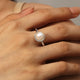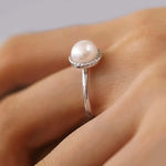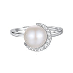 925 Silver Adjustable Open Ring With Natural Freshwater Pearl And Moissanite For Women Moon Shape Simple Style Jewelry
