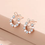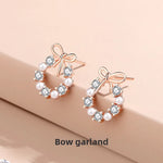 925 Sterling Silver Butterfly Knot Pearl Earrings Women Simple Ins Girl Heart Versatile Pearl Flower Ring Ear Jewelry