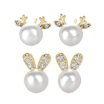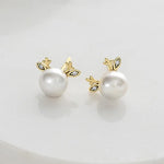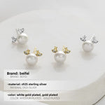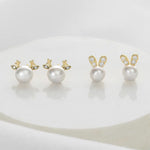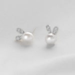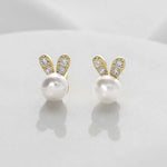 925 Sterling Silver Pearl Earrings Deer Antler Design Cute Rabbit Ear Women's Fashion Jewelry Accessories Autumn Winter Style