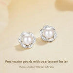 Elegant Pearl Stud Earrings For Women 925 Sterling Silver Geometric French Style Summer Fashion Light Luxury Ear Jewelry