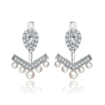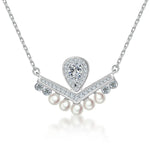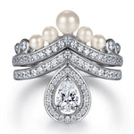 Elegant Pure Silver Jewelry Set For Women Crown Ring Tassel Pearl Earrings Luxury V-Neck Necklace Style