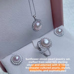 Elegant S925 Sterling Silver Sunflower Stud Earrings Ring Pendant Three Piece Set For Women Luxury Jewelry Accessories