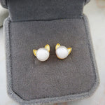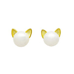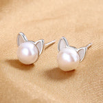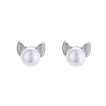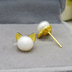 Fashionable Cat Ear Studs for Women Simple 925 Sterling Silver Creative Natural Freshwater Pearl Earrings Winter Jewelry