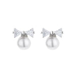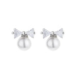Fashionable S925 Sterling Silver Butterfly Knot Pearl Stud Earrings Women's Simple Elegant New Style Jewelry Accessories