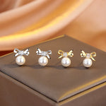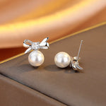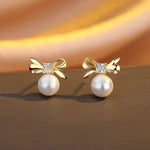 French Gold Butterfly Knot Pearl Earrings Women S925 Silver Unique Design Sensation Ear Jewelry Popular Hoops