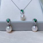 French Luxurious Hepburn Style Green Pearl Earrings Necklace Set Mother's Day Gift Women's Jewelry Freshwater Pearl Jewelry