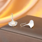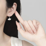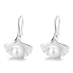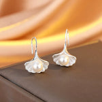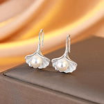 New Fashionable Silver Maple Leaf Pearl Earrings Women's Fan Shape Versatile Elegant Chinese Style Jewelry Accessories