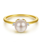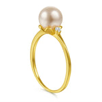 New Pearl Embedded 925 Sterling Silver Ring For Women Simple Electroplated Gold Non-fading Fresh Style Commuting Index Finger Ring