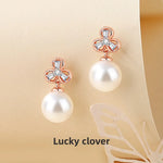 Original Lucky Three-leaf Clover Shell Bead Earrings Women's Pure Silver Fresh Forest System Rose Gold Petal Ear Jewelry