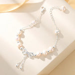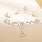 Princess Fugitive Butterfly Knot Pearl Silver Bracelet Women's Fashion French Style Beaded Jewelry Accessory