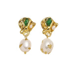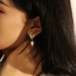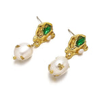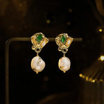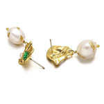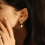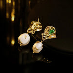 Retro Luxury Versatile Gold Plated Brass Pearl Stud Earrings Individuality Fashion Niche Vacuum Electroplated 18K Genuine Gold
