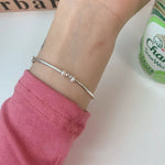 S925 Sterling Silver Handmade Pearl Bent Tube Bracelet Women's Fashion Geometric Pattern Vintage French Style Jewelry