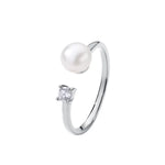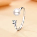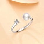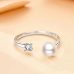 S925 Sterling Silver Ring With Shiny Freshwater Pearl And Four Claws Elegant Open Ring For Women Geometric Pattern Luxury Simplicity