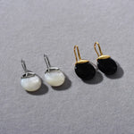 Unique Personality Simple Fashion Yellow Brass Plated 18K Gold Embedded Black Agate White Mother Of Pearl Pendant Earrings Women
