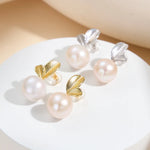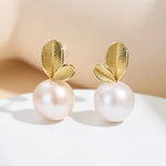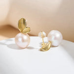 Women's 925 Sterling Silver Pearl Earrings 10-11mm Natural Freshwater Pearl Leaf Design Wedding Bridal Party Birthday Gift Ear Studs