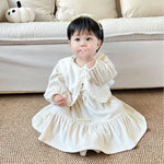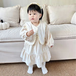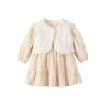Autumn Winter Plaid Lace Trimmed Princess Dress Girls' Fashionable Children's Outfit Set With Vest Long Sleeve Cotton New Style