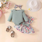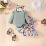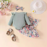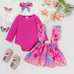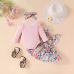 Floral Three-piece Set Long Sleeve Infant Toddler Butterfly Bowtie Bib Overalls Soft Knitted Fabric Sweet Style Girls Outfit