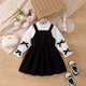 Girls Autumn Dress New Style Butterfly Knot Ruffle Collar Bubble Long Sleeve Shirt Children's Overalls Skirt Casual Pure Color