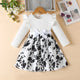 Girls Floral Print Dress Infant Spring Autumn Winter Season Long Sleeve Knitted Polyester Fabric Butterfly Knot Flying Sleeve Dress