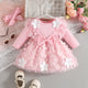 Girls' Knitted Butterfly Mesh Dress Pure Color Long Sleeve Gathered Edge One-Piece Autumn Winter New Style Soft Polyester Fabric