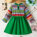 Girls Knitted Long Sleeve Round Neck Dress Fashionable Bright Colors Princess Style Infant Spring Autumn Winter Season Polyester Fabric