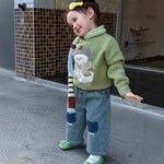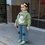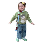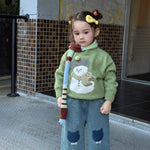 Girls Knitted Sweater Winter Thick Warm Cartoon Overhead Long Sleeve Cotton Blend Soft Round Neck Toddler Kids Fashionable Woolen Top