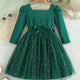 Girls Long Sleeve Pleated Dress With Lace Double Layer Skirt And Star Embellishment Waist Butterfly Knot Spring Autumn Winter