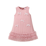 Girls Sleeveless 3D Butterfly Knot Tulle Skirt Dress Summer Clothes Sweet Princess Style Pure Color Polyester Fabric Little Girls
