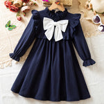 Princess Dress For Girls Long Sleeve Baby Dress Autumn Winter New Style Children's Clothing College Style Butterfly Knot Dress