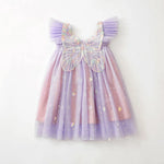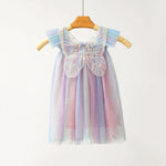 Rainbow Net Gown Children's Princess Dress Tulle Skirt With Butterfly Wings Dance Queen Style Spring Autumn Polyester Fabric