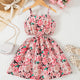 Summer Floral Print Infant Girls Dress Beach Holiday Style Strap Design Polyester Fabric Princess Style Children Skirt