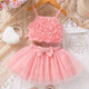 Summer New Style Girls' Floral Butterfly Knot Tulle Skirt And Strap Top Two-Piece Set Sweet Polyester Fabric Short Sleeve