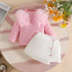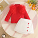 Sweet Girl Baby Girl Long Sleeve Mesh Trim Skirt Set Autumn Winter Soft Polyester Decorative Button Half Body Skirt Set